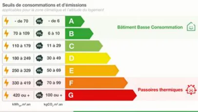 Il est synthétisé dans une étiquette énergie qui attribue une note de A à G selon la consommation d'énergie primaire.